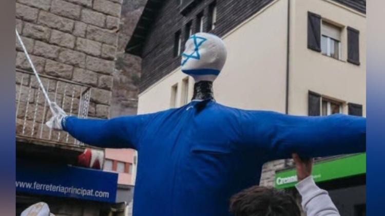 Une grande poupée habillée aux couleurs d'Israël, étoile de David sur le visage, a été symboliquement pendue, fusillée et brûlée...